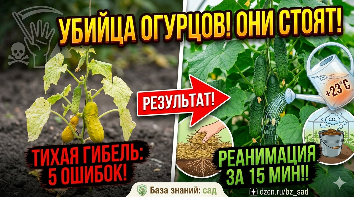 Вы посадили элитные семена, поливаете их каждый день, а толку ноль? Огурец — это растение-спринтер: он должен расти стремительно. Если плеть замерла хотя бы на три дня, значит, растение находится в глубочайшем стрессе. В 90% случаев дачники сами «тормозят» свои огурцы, совершая ошибки, которые кажутся незначительными. Помните: огурец не прощает ошибок с температурой и питанием. Если не исправить ситуацию сейчас, вместо хрустящих зеленцов вы получите горькие «желтяки». Вот реанимационный план для ваших грядок. Огурец — выходец из джунглей Индии. Он обожает тепло, но самое важное для него — температура почвы, а не воздуха. Если огурец не растет в длину, а листья мелкие и светлые — ему катастрофически не хватает азота. Если огурчики завязались, но растут в форме груши (тонкие у плодоножки и толстые снизу) — это крик о нехватке калия. Корни огурца очень нежные и находятся почти на поверхности. Огурцы растут не только из земли, но и из воздуха. Им жизненно необходим углекислый г