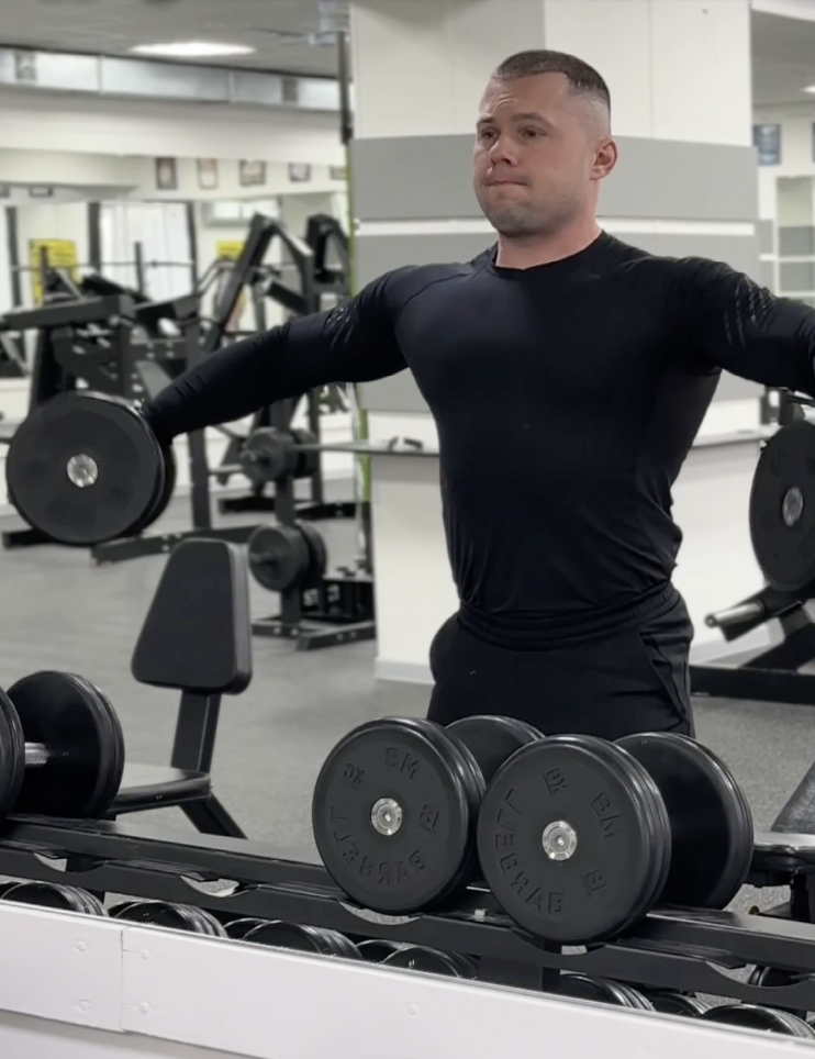 Это упражнение часто выполняют неправильно, поднимая плечи к ушам и включая трапециевидные мышцы. Но для мужчин после 40 важнее другое: средняя дельта отвечает за стабильность плечевого сустава при подъеме рук в стороны, что необходимо в повседневной жизни — от того, чтобы дотянуться до верхней полки, до занятий теннисом или плаванием.