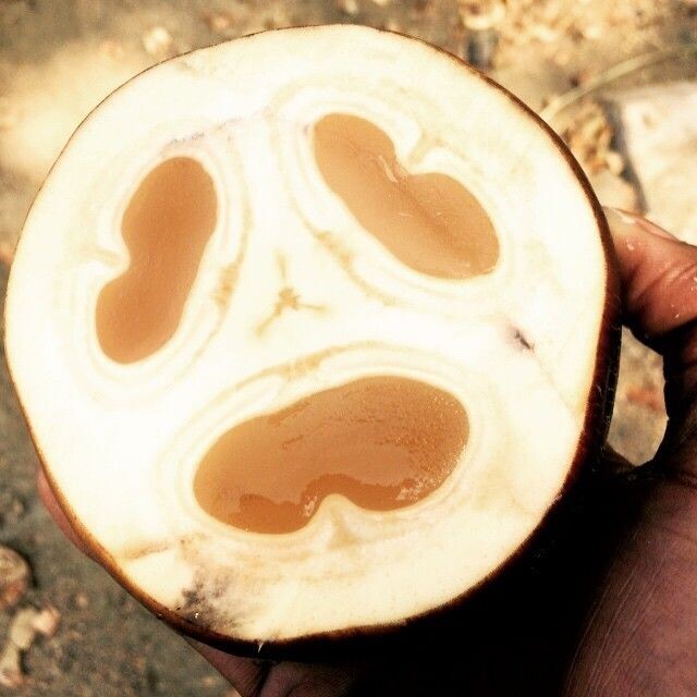 - Пищевая ценность: Мякоть нунгу обладает освежающим, сладким вкусом с легкой кислинкой, напоминающим смесь манго, дыни и персика. Ее едят в свежем виде, используют для приготовления соков, смузи, джемов, желе, десертов и даже алкогольных напитков. Семена пальмиры также съедобны после термической обработки и имеют ореховый привкус.