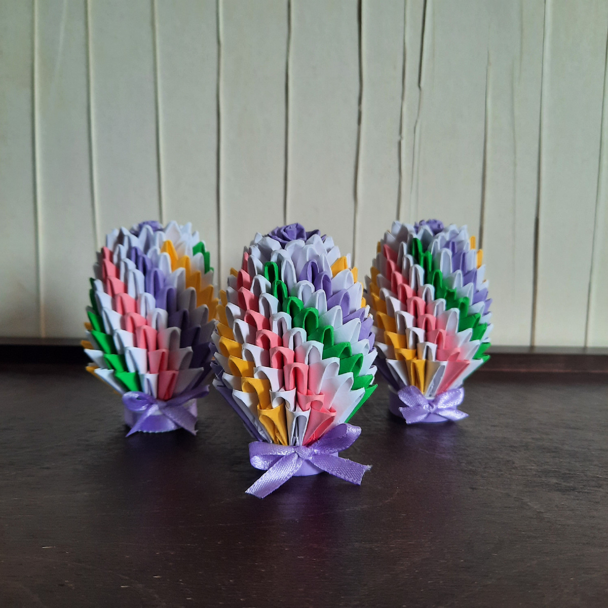 Яйца в технике "модульное оригами" будут вас радовать довольно долго. И ничего с ними не случится, хотя и изготовлены они из бумаги. Единственное, бумага может выгореть на солнце. Ну, это уже зависит от качества последней.