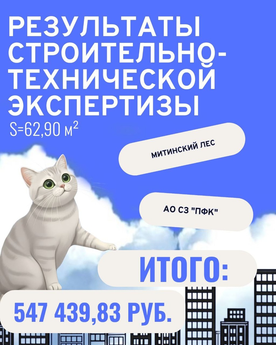 🆗 ➿➿➿➿➿➿➿➿ ➡️ЖК: МИТИНСКИЙ ЛЕС ➡️Площадь: 62,90 м² 💸Стоимость устранения строительных недостатков- 547 439,83 рублей. ❤️При заключении договора на взыскание компенсации с застройщика за некачественную отделку мы оплатим за Вас строительно-техническую экспертизу! Лучше звоните Юсти🆗 ➿➿➿➿➿➿➿➿➿ 📞+7 (936) 333-33-48 ✅@Yustivia 🌐yustivia.ru ➕Яндекс услуги