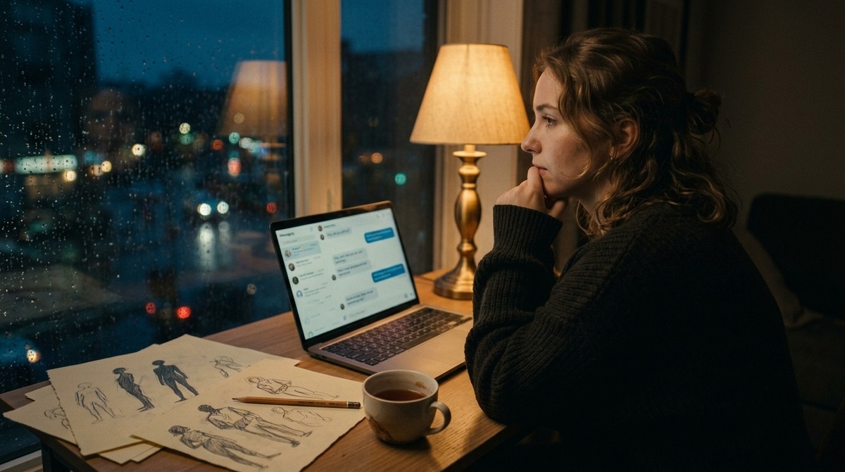 Ноутбук остался открытым. За окном темнело. Я смотрела на его сообщение и думала о том, что правильные слова иногда не приходят сразу – просто сидишь и ждёшь, пока что-то внутри не решит, что делать дальше.