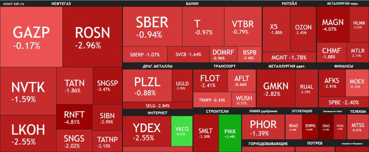 📉IMOEX -1.1% Нефть резко снизилась на более чем 8% и устроила распродажу на IMOEX. Дональд Дж. Трамп сообщил, что США и Ирана провели очень хорошие и продуктивные переговоры. Впрочем, Иран эту информацию не подтверждает. Сложно сказать, что происходит на самом деле. Если такие переговоры действительно идут, то США заинтересованно в их обнародовании, а Иран заинтересован всё скрывать до их завершения. С другой стороны, это может быть уловка Д.Трампа, чтобы сбить цены на нефть🤷♂️ 📉ММК -3.8% На фоне кризиса в отрасли объявила о сокращении 10% управляющего персонала. Загрузка ММК упала до 60%, инвестпрограмма практически полностью остановлена😳 📉Сургутнефтегаз ап -2.9% Официальный курс доллара на завтра снизился более чем на 2 рубля и потянул за собой котировки Сургутнефтегаза😔 📉ЭН+Групп -4.4% Котировки продолжают отыгрывать щедрость собственника. Компания отправила около 15 млрд рублей на благотворительность, вместо того чтобы сократить свой большой долг🤷♂️ Дополнительное дав