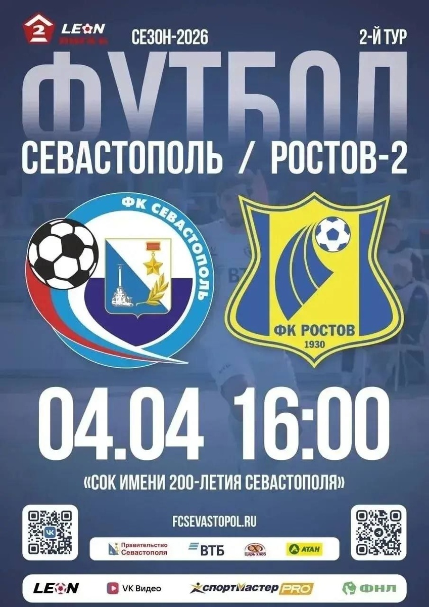 Сезон начнется 28 марта выездным матчем против луганской «Зари» в Каменск-Шахтинске, сообщил губернатор Михаил Развожаев. Первая домашняя игра пройдёт 4 апреля в 16:00 на поле СОКа имени 200-летия Севастополя. Стадион примет матчи на время капремонта основной арены, где обновят покрытие и инженерные системы. Билеты онлайн станут доступны с 28 марта через сервис «Касса.24», в кассах — со 2 апреля. 📺 СТВ в MAX