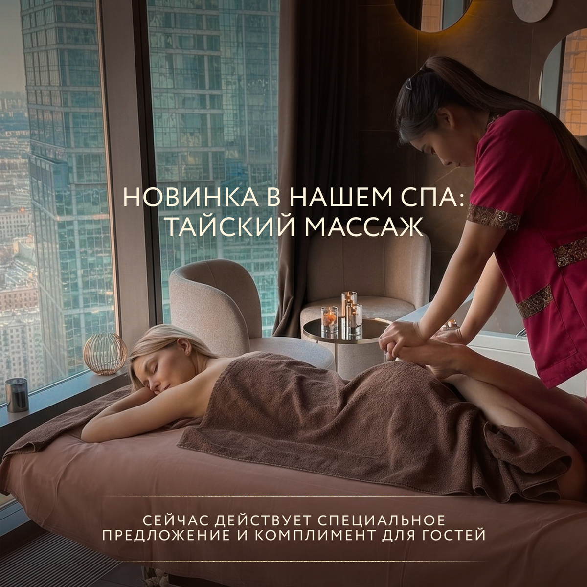 Иногда лучший способ провести время вместе — это остановиться, выдохнуть и просто расслабиться. С 15 по 31 марта в Respace действует специальное предложение, которое объединяет отдых, заботу о теле и атмосферу уюта — скидка 15% на парный тайский массаж. Это не просто процедура, а полноценный совместный опыт восстановления. Парный тайский массаж — это древняя техника, которая проводится одновременно для двух гостей в одном пространстве. Во время сеанса используются: Тело постепенно расслабляется, уходит напряжение, улучшается гибкость и общее самочувствие. Вы отдыхаете вместе — и восстанавливаетесь вместе. Срок действия: с 15 марта по 31 марта Форматы и стоимость: В стоимость уже включён приятный бонус —