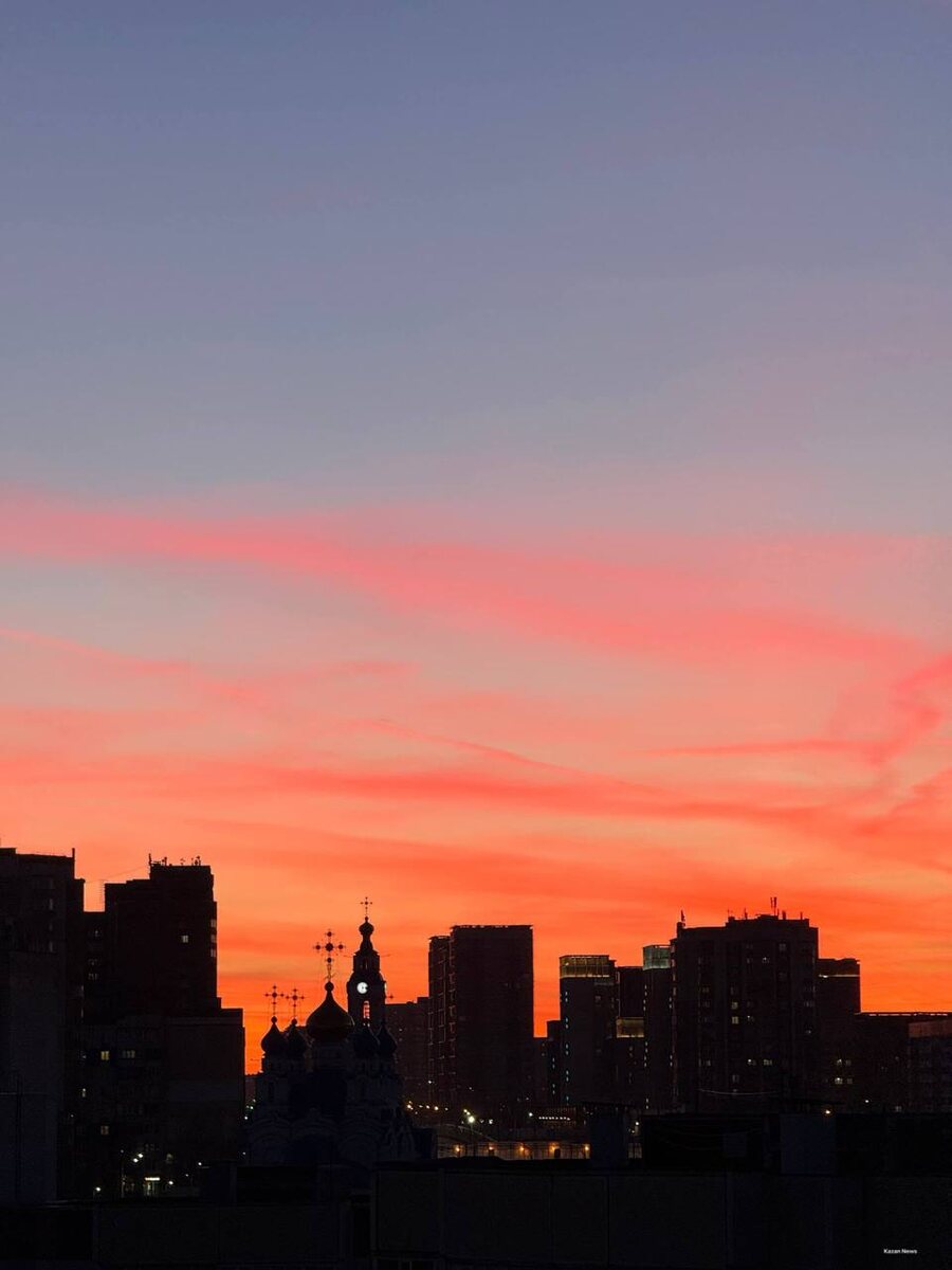 Огненные цвета красиво украсили небо. Сегодняшний вечер подарил казанцам живописные пейзажи. Как вам? 👍/ 👎 📲 Читайте нас в MAX 😊 Подписаться | Прислать новость