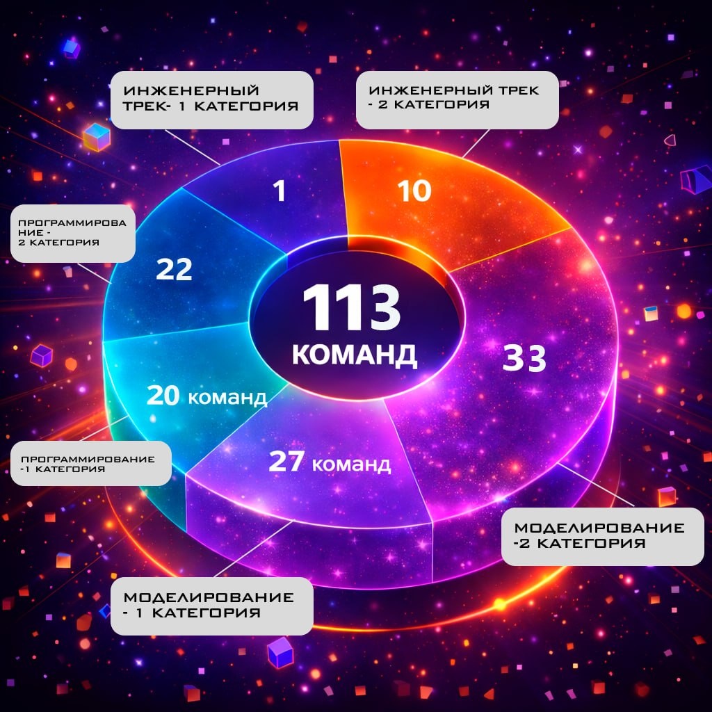 ! Друзья, мы готовы объявить команды, которые прошли в полуфинал «Цифровые миры: VR-созидатели — 2026»! 🚀 Эксперты оценили идеи, проработку концепций и потенциал проектов. И вот имена тех, кто продолжает борьбу: Всего в полуфинал прошло 113 команд. 💥 Инженерный трек (1 категория, 14–17) — 1 команда Digital Twins Инженерный трек (2 категория, 18+) — 10 команд Подмастерье, Мета, Матиз, Way to VR, ComboBox, НЕ_ПСОВЫЕ, Мультимедиа творцы, Без САПРотивления, D-World, Рожденные побеждать Моделирование (1 категория, 14–17) — 27 команд PotatoPie, Всегда первые, -50 С, Трехмерные грани, Neuronum, ИГРОДЕЛЬНЯ, БПК, Кибер котята, «Рассвет», Кириешки, VR-ika, 3D Team, Творцы форм, ТПТ, ГУН, «Sweet», Вайб-кодеры, Творческая Сила, Крутые перцы, IT-Куб «Северный», Легион, GenesisLab, Дружелюбные улыбашки, Разрабы, Новое поколение, технологические мастера, Алюминиевые огурцы Моделирование (2 категория, 18+) — 33 команды VYRAX, Билет_15_Место_22, Солнышки, Угарный газ, Мечтатели, 4 байта, ИТД,