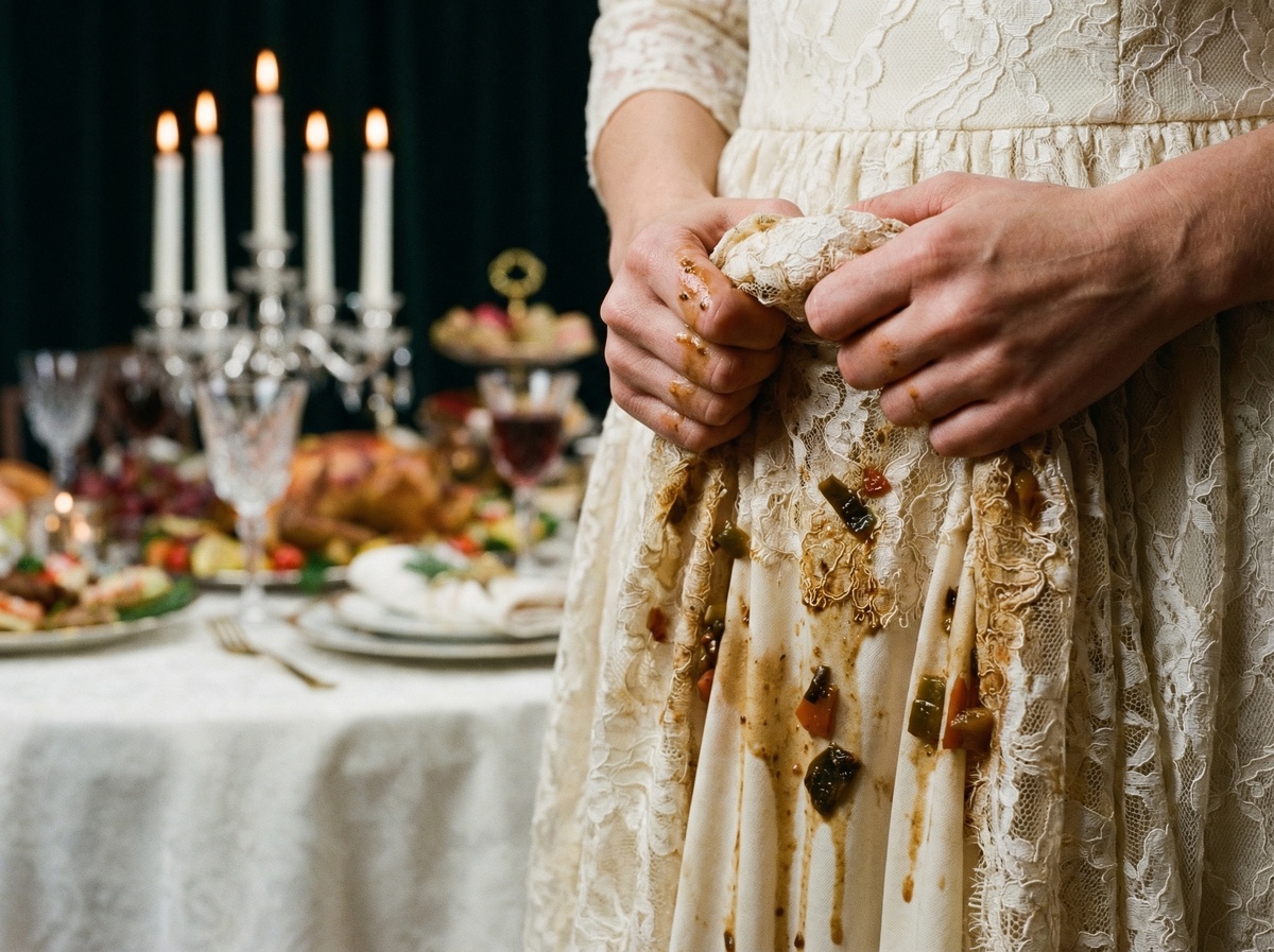 Через 17 минут он умолял меня вернуться. Но суп на моём платье уже высох. И я наконец-то поняла: есть вещи, которые не отстирать.