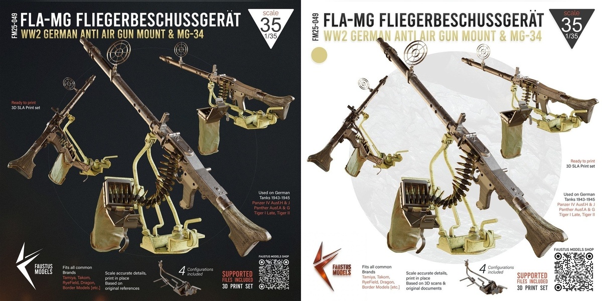 Немецкая Faustus Models выпустила на 3D-принтере пулеметную установку Fla-MG Fliegerbeschussgerät с пулеметом MG 34 в масштабе 1/35: