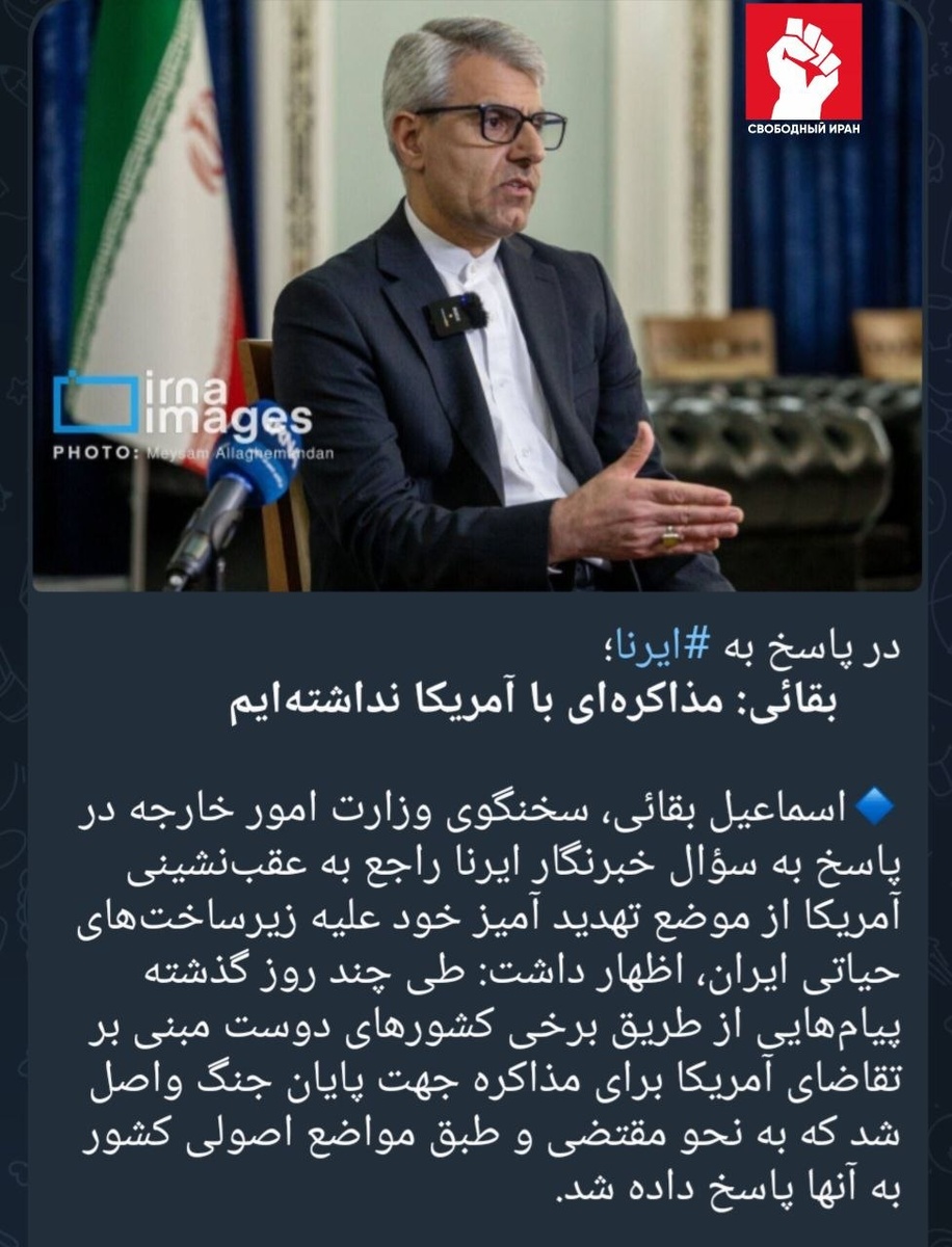 ⚡️ Официальный представитель МИД Бекаи заявил, что через дружественные страны приходили сигналы от США о переговорах по прекращению войны, но Тегеран дал принципиальный отказ. Он же предупредил о тяжелых последствиях любой атаки на энергетическую инфраструктуру и пообещал ответ ВС Ирана. Позиция по Ормузскому проливу и условиям завершения войны, по его словам, не менялась. Подпишитесь на канал