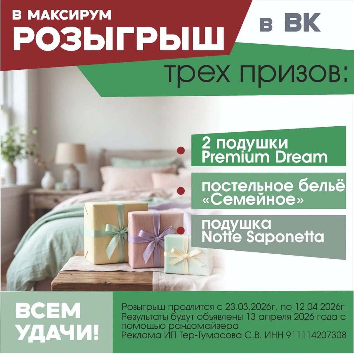 Максирум — прямо в ВК! 🏡 Разыгрываем классные спальные принадлежности: подушки и постельное бельё! Как выиграть? Легко: переходите по ссылке https://vk.cc/cVPsyJ и соблюдайте условия участия! Победителей объявим 13 апреля. Всем удачи! 🍀 💖