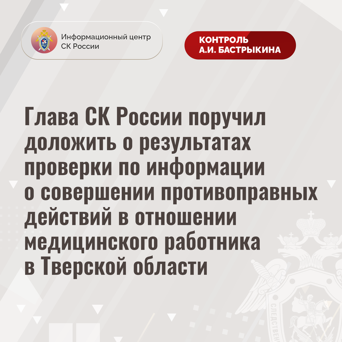 #СледственныйКомитет #СКРоссии #СКР #ИЦСКР #ИнформационныйЦентр #АлександрБастрыкин #ПредседательСКР #Контро