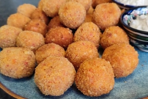 Подавайте шарики горячими. Они идеально сочетаются со сметаной, соусом тартар, чесночным соусом или просто с зеленью.