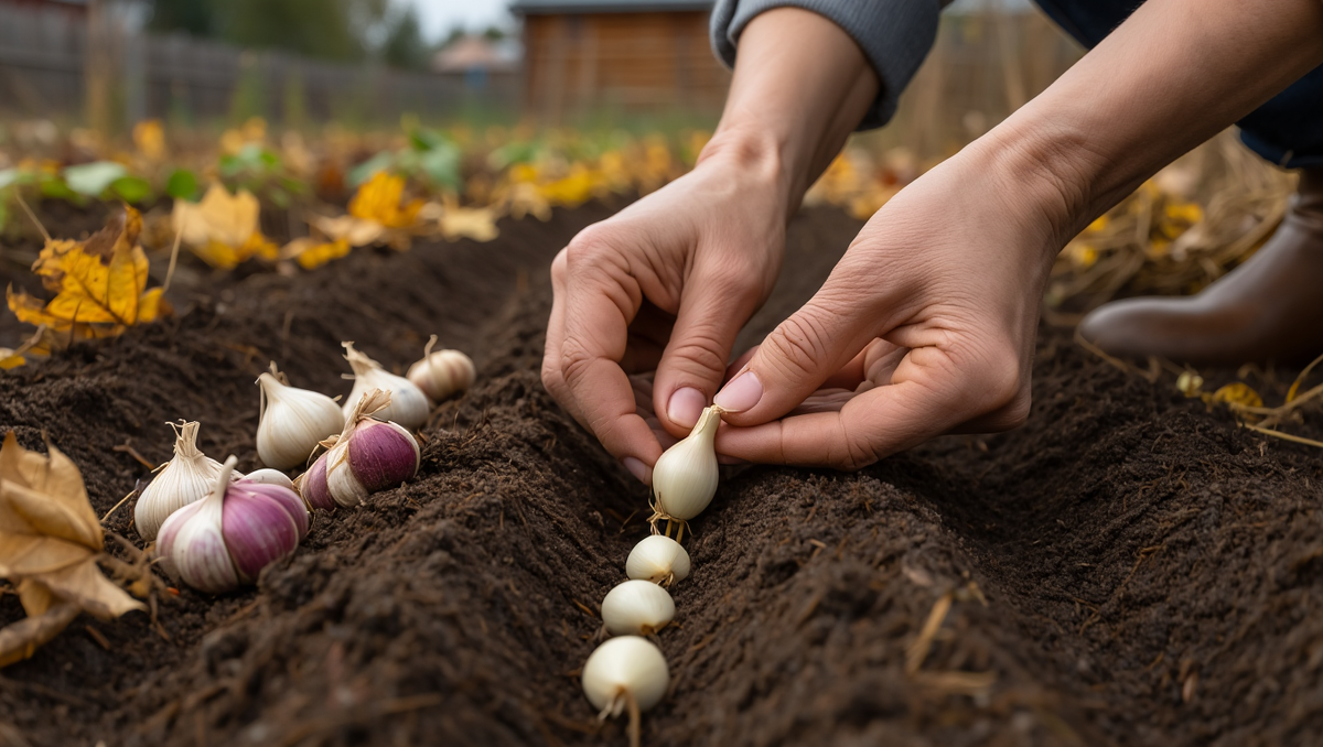 Сроки: за 3–4 недели до заморозков (в Подмосковье — 5–10 октября). Зубки: только крупные, от 5–6 граммов, замочить в марганцовке 30 минут. Место: открытое, без застоя воды, не после лука и самого себя. Глубина: 5–6 сантиметров. Расстояние: 10–12 см между зубками, 20–25 см между рядами. Укрытие: 5–7 сантиметров соломы, листьев или торфа. Весной: снять укрытие при оттаивании, одна подкормка мочевиной.