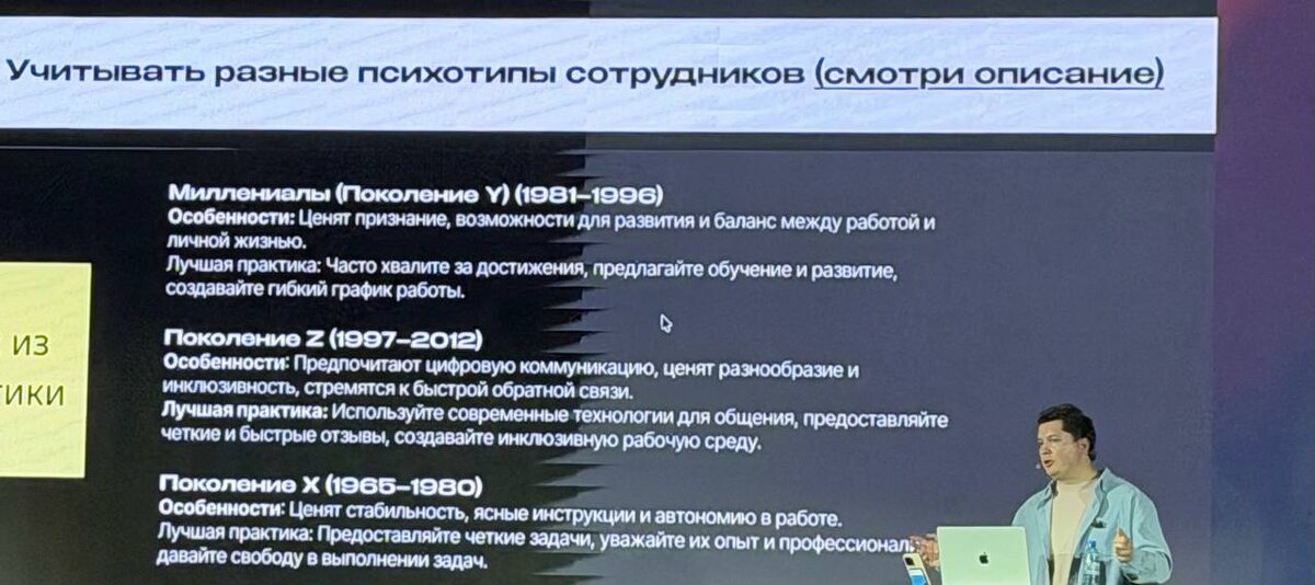 Завершаю основные посты со слета «Нечто». Второй спикер вчерашнего дня - Александр Животов. И он зашёл с другой стороны: 👉 Проблема не только в том, кого вы наняли, 👉 а в том, как вы ими управляете. Главная мысль Люди разные, и управлять всеми одинаково - ошибка. Поколение Y (миллениалы) • важна признательность • рост и развитие • гибкость ➡️ если этого нет - они выгорают Поколение Z • скорость • цифровое общение • быстрый фидбек ➡️ если долго думаете - они теряют интерес Поколение X • стабильность • чёткие задачи • автономность ➡️ если хаос - они «закрываются» Что это значит? • Нет универсальной команды • Нет универсального управления Если всем даёте одно и то же: • одни недогружены • вторые перегружены • третьи не понимают, что происходит Связка двух выступлений Алиев - кто у тебя в команде Животов - как ты ими управляешь Если нет одного из двух, то результата не будет. И вот именно такие вещи мы дальше будем разбирать глубже: 👉 как выстраивать систему 👉 как делать не