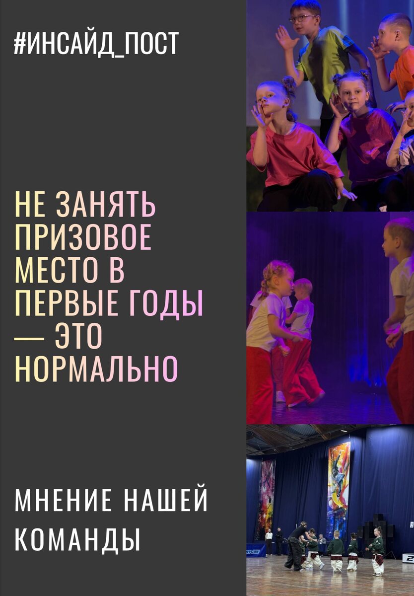🏆Не занять призовое место в первые годы — это нормально 💬Один из самых частых вопросов от родителей: «Почему нет призового места?» И здесь важно говорить честно — в первые годы обучения это абсолютно нормально. 😺Танцы — это не быстрый результат. Это путь, где сначала формируется база: координация, чувство ритма, контроль тела, выносливость. 🤔Что происходит в начале: — ребёнок учится слышать музыку — запоминает движения — привыкает к сцене и вниманию зрителей — справляется с волнением И уже потом приходит результат в виде призовых мест. 🏆Победа — это не случайность. Это накопленный опыт, дисциплина и регулярная работа. ⚠️Более того, первые выступления без призовых мест — это важнейший этап: — формируется характер — появляется мотивация расти — ребёнок учится не сдаваться И именно такие дети потом делают самый сильный скачок. 📣Мы всегда говорим: сначала — умение, потом — результат. Поэтому если в начале пути нет медалей — это не повод переживать. Это значит, что идёт про
