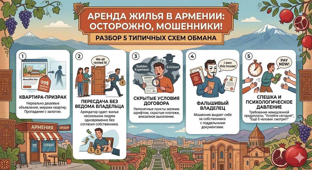 В этой статье разберём 5 самых распространённых схем мошенничества при аренде жилья в Армении и расскажем, как их избежать.