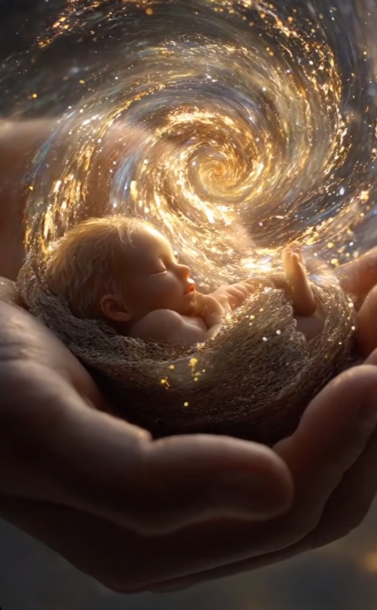 Он шевелит ножкой. Подносит ручку к лицу. Сосет пальчик.