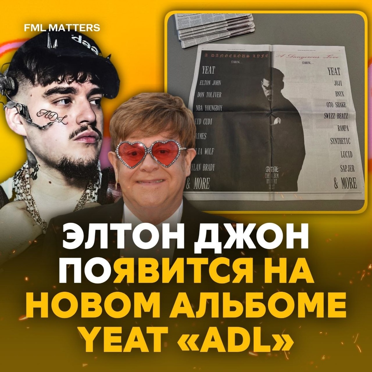 ! В сети появился разворот с гостями нового альбома Йита — и один из самых неожиданных фитов в списке это Элтон Джон. Среди других заявленных имён: Don Toliver, NBA YoungBoy, Joji, Kid Cudi, Grimes, Dylan Brady и 070 Shake. Норм фиты? ❤️🔥/👎 💀 FML MATTERS
