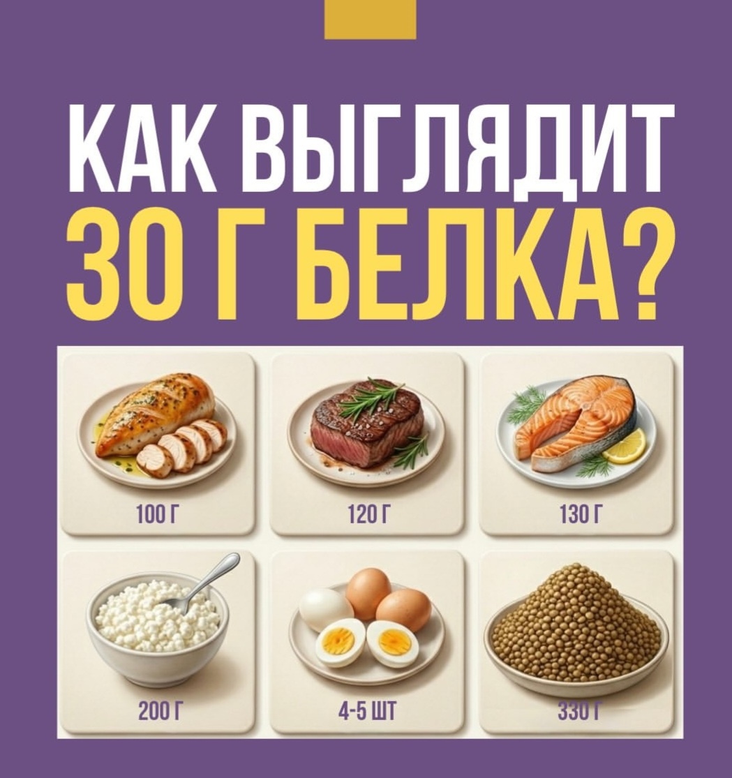 30 г белка в каждом приёме пищи при трёхразовом питании.