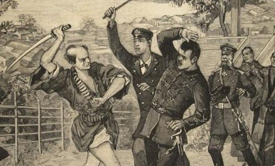 Цуда Сандзо выскочил из оцепления и, держа саблю двумя руками, обрушил ее на голову цесаревича. Николай даже не увидел нападавшего — он обернулся только тогда, когда полицейский заносил оружие для второго удара.