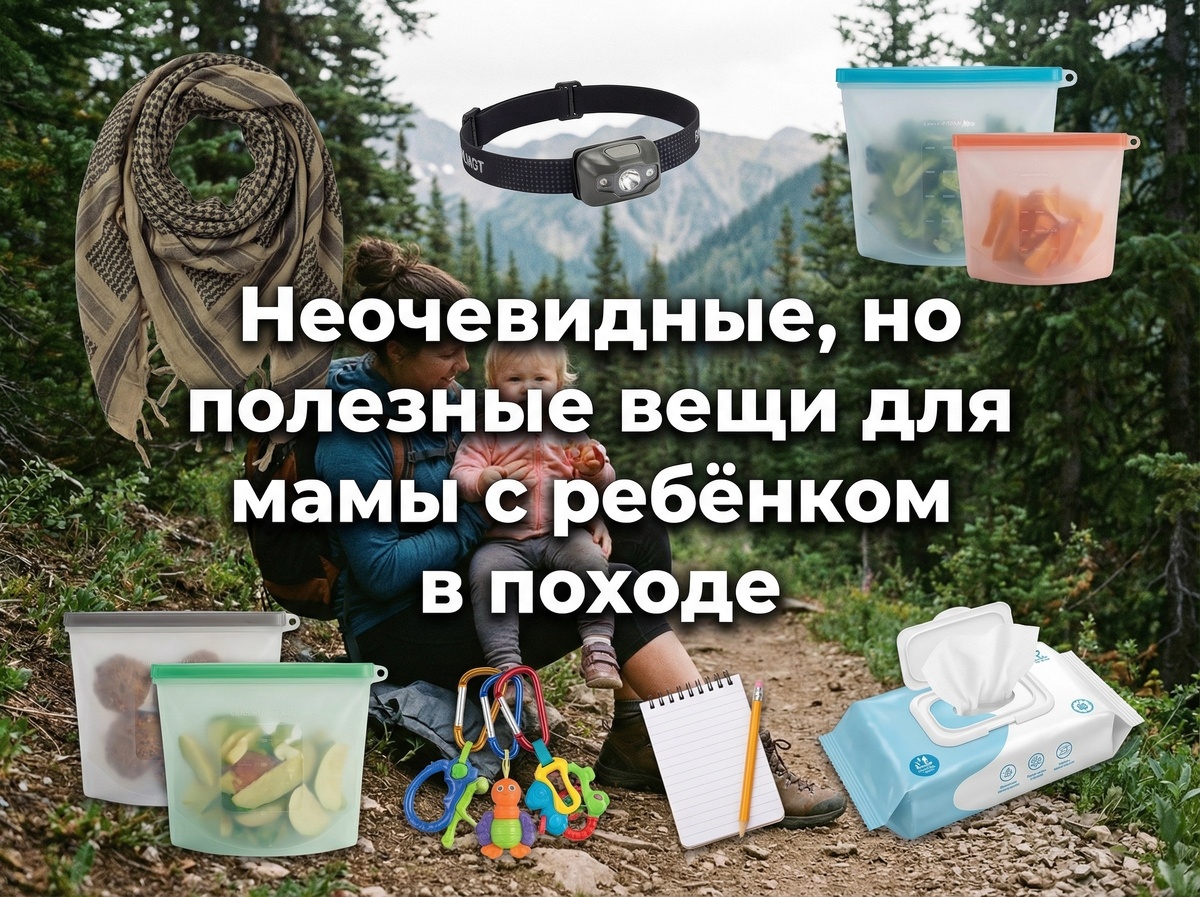 Перед выездом уточните у организатора: есть ли электричество на базе/стоянке и что выдают помимо палаток. Ниже — только то, что часто забывают, но реально выручает. Если в лагере есть электричество, эта вещь сильно облегчит вам жизнь. Больше никаких сгоревших у костра ботинок. Фонарики обычно светят слишком ярко для проснувшегося ночью малыша. А с гирляндой и засыпать приятно и уютно. Если потерялся стой на месте! Тебя будут искать! Вместо крика -свисти! - Слова которые пред походом стоит повторить ребенку несколько раз Чистые штаны в любую погоду. И да, маме тоже можно! Не обычный тонкий, а именно мозольный. Дает возможность закончить поход без мучительной боли. Одноразовые или те, что можно кипятить. Столько белья, как на фото за раз вам вряд ли придется сушить. Только если вы утопили весь рюкзак. Но веревка и прищепки вещь крайне полезная Мама "в ресурсе" и этим все сказано. маленькая коробочка в боковом кармане рюкзака пригодится вам не раз. А какие лайфхаки знаете вы?