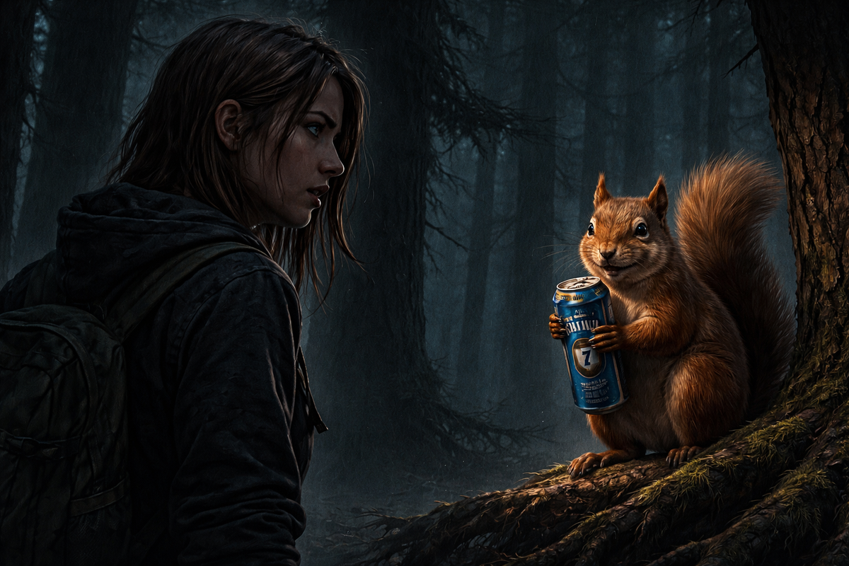 Белка бежала неторопливо, прижимая к оранжевой грудке пиво. Время от времени она оглядывалась и издевательски хихикала.