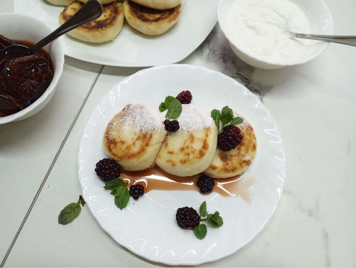 Все равно можно приготовить самые вкусные, пышные, натуральные, красивые сырники. Сырники получаются нежные, мягкие, но хорошо держат форму. Для приготовления сырников использую свой, домашний творог, который готовлю сама из магазинного молока. Очень рекомендую готовить самостоятельно творог. Хоть эта статья и вышла в августе 2023, я внесла поправки в нее сегодня, можете перейти и прочесть. Все очень легко и просто, нужно только желание. Чтобы сырники не разваливались в процессе приготовления, необходимо добавить в творожную массу манную крупу. За 15 минут нахождения массы в холодильнике она разбухнет в массе и совсем не будет чувствоваться в готовых сырниках. Зато повысится калорийность блюда. Используйте погружной блендер для смешения всех ингредиентов и получения однородной массы. Сначала сформируйте все заготовки сырников, а затем жарьте их. Сначала нагрейте сковороду, затем влейте в нее масло и через несколько секунд выкладывайте жариться сырники. Если донышко сырника в процесс