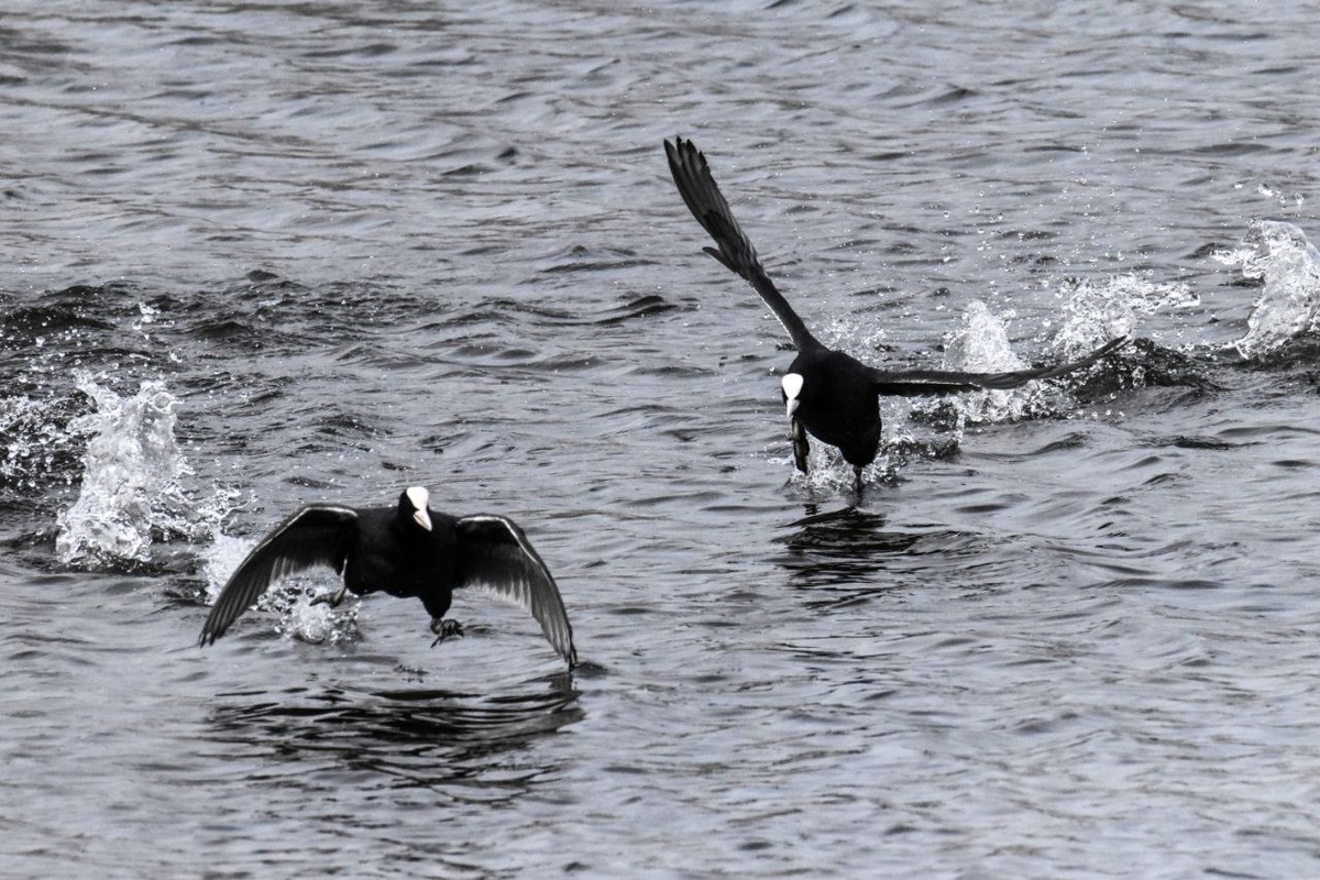 У кого-то весна только начинается, кто-то до нас ещё вообще не долетел, а у лысух уже драмы разыгрываются! Похоже, две пары лысушек не