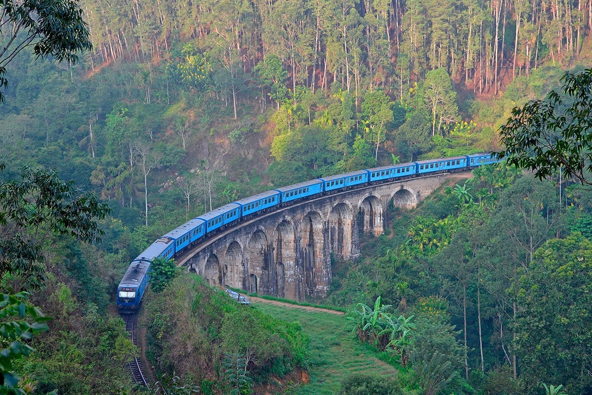 Постоянная рубрика "Электрички в кадре" с еще одной диковинкой с острова чая и слонов. Китайский дизель-поезд MCG S12-928 ночным маршрутом Коломбо — Бадулла синей змеей проходит одну из главных достопримечательностей Цейлона — девятиарочный мост на перегоне Демодара — Элла. Шри-Ланка. Ноябрь, 2016 г. Фото: dsbalandin Telegram | Max | VK | #Электрички_в_кадре