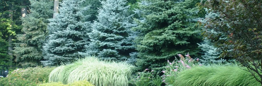 - высокорослые (ель «Сербская», туя «Брабант», пихта «Корейская») — подходят для создания тени, живых изгородей, фоновых композиций;