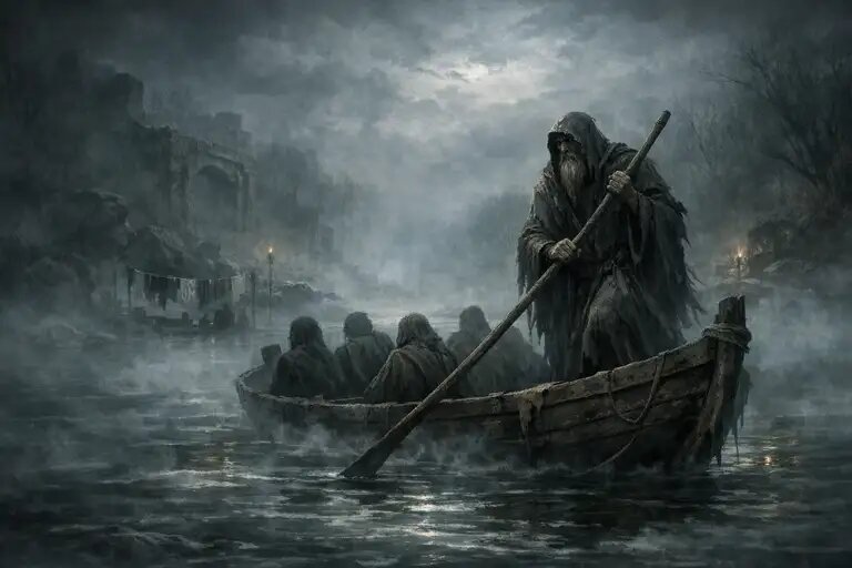 В туманных водах подземного мира, где тени умерших ожидают своей участи, стоит одинокая фигура с веслом в руках. Харон — древний перевозчик душ, чей образ пронизывает тысячелетия человеческой культуры, оставаясь одним из самых узнаваемых персонажей мировой мифологии. Его история начинается в глубинах греческой древности и продолжает жить в современном искусстве и литературе. Согласно древнегреческим источникам, Харон был сыном Эреба (Тьмы) и Никты (Ночи) — первозданных божеств, олицетворявших изначальный хаос. Его имя, возможно, происходило от греческого слова, означающего «яростный блеск». Эта этимология удивительно точно отражает двойственную природу персонажа — одновременно мрачного и величественного. Роль Харона в греческой мифологии была четко определена: он перевозил души умерших через реки подземного мира — Ахерон и, в более поздних источниках, ядовитую Стикс — к месту их окончательного суда. Важно отметить, что Харон не был простым слугой — он выполнял священную функцию психопо