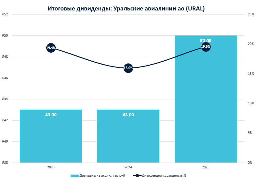 Совет директоров Уральских авиалиний рекомендовал дивиденды за 2025г в размере 50 000 руб. на ао 🔹Дивидендная доходность: 19,57%
