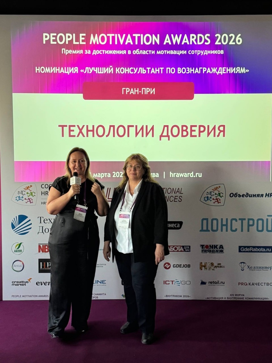 консультант по вознаграждению». Торжественное вручение наград состоялось на XIV Практическом HR-Форуме «Мотивация и внутренние коммуникации — 2026», организованном Сообществом HR-Директоров. Награду получили: 🔹 Карина Худенко, партнер налоговой практики 🔹 Елена Морякова, директор практики управления персоналом, расчету заработной платы и кадровому делопроизводству Благодарим коллег из смежных практик за общую слаженную работу, благодаря которой компания «Технологии Доверия» получила награду. 🏆 Поздравляем с заслуженным признанием! #ТеДо