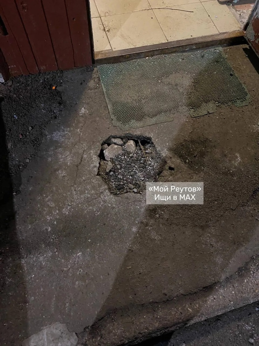 У входа в подъезд образовался провал из которого торчит штырь. Просьба отремонтировать. #отподписчиков #Реутов «Мой Реутов» в MAX: https://max.ru/reutov_today
