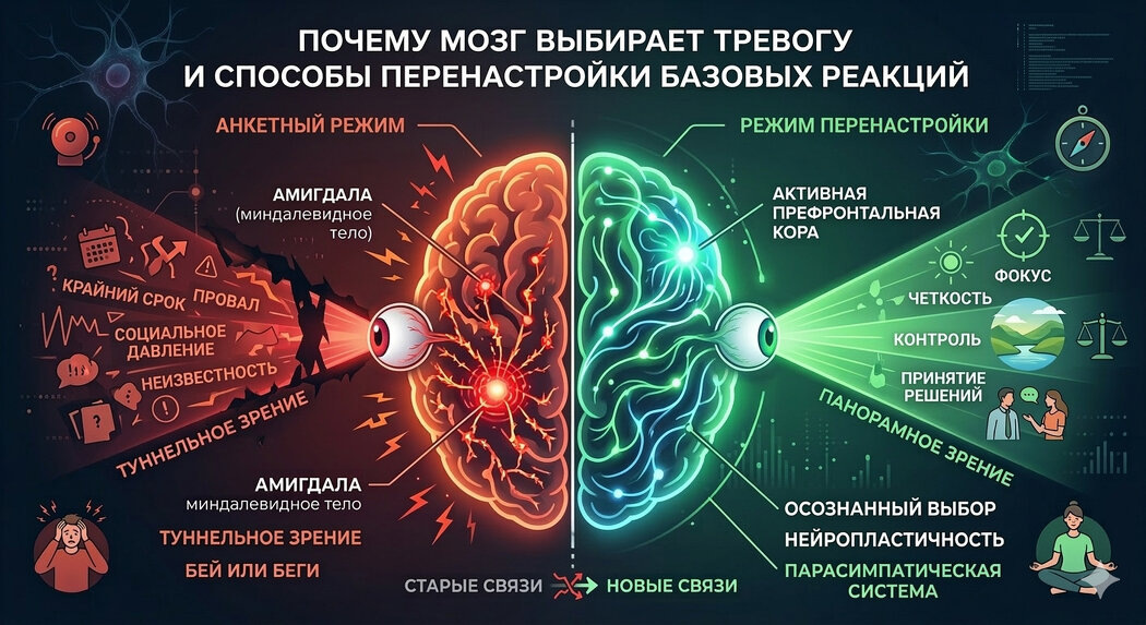 Почему мозг выбирает тревогу и как перенастроить базовые реакции