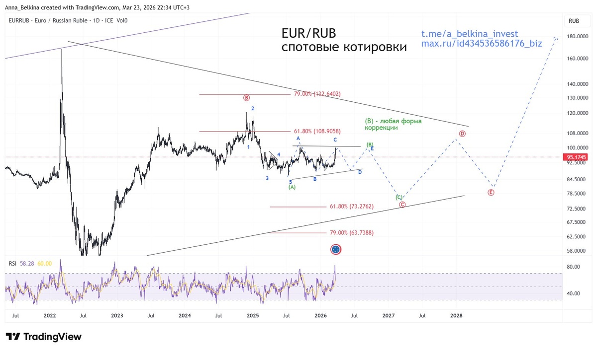 Спотовые котировки. Последнее обновление было в мае 2025. четко идем по сценарию: https://dzen.ru/media/id/65b8789ff12bfe0796a26941/eurrub-spotovye-kotirovki-grafik-prakticheski-povtoriaet-usdrub-cnyrub-681e0039b2f8c36f1522631e Сейчас также формируем промежуточную волну (B) of [C] треугольника. Это может быть любая форма коррекции. Пока придерживаюсь треугольника как на USDRUB #CNYRUB #SI для последовательности. Не является ИИР Канал в MAX