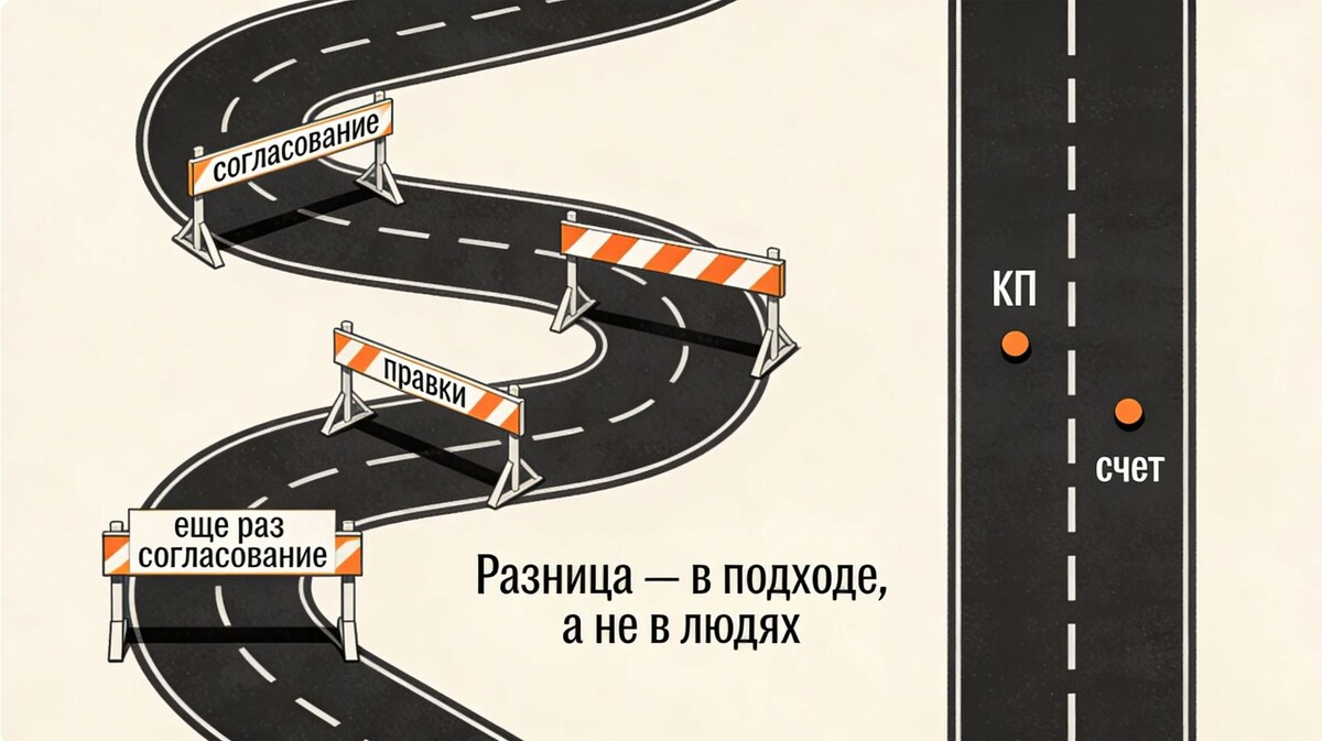 Менеджер готовит коммерческое предложение за час. Клиент горячий: готов платить сегодня. Дальше происходит странное. КП уходит на согласование. Руководитель смотрит. Думает. Решает: «потом». Потом наступает через два дня. Клиент за это время находит другого поставщика. Сделка не случилась. Мы видели такое много раз. У клиентов. И у себя. Пока однажды не решили: хватит. Рассказываю, как мы убрали «висяки» на согласованиях, унифицировали коммерческие предложения и сократили цикл сделки на 20–30%. Без магии. Без приказов «работать быстрее». Просто настройками в ELMA 365. Клиент пришел с четким запросом. Менеджер всё сделал быстро: посчитал, подготовил КП, отправил на согласование. Руководитель посмотрел в телефоне. Подумал: «надо уточнить у партнеров по смежным услугам». Отложил. Партнеры ответили на следующий день. Руководитель в это время был на встрече. Потом — совещание. Потом — конец дня. Клиент ждал три дня. На четвертый написал: «всё, нашли других». Мы потеряли сделку. Не потому, ч