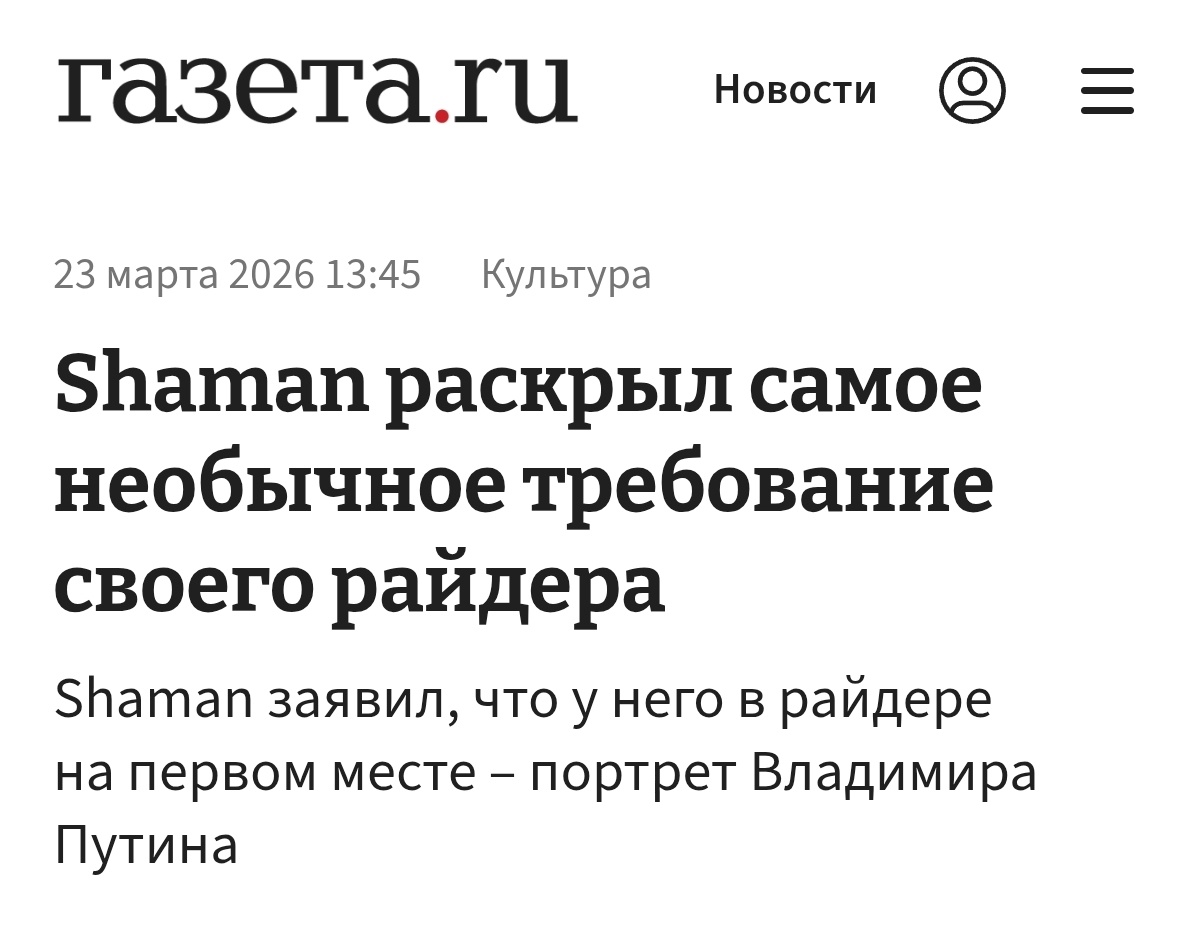 Новость, которая на днях всколыхнула телеграм-каналы, вызывает не столько патриотический трепет, сколько недоумение вперемешку с улыбкой. Артист Ярослав Дронов, он же Шаман, якобы обновил свой технический райдер. И если раньше там были стандартные требования к звуку, свету и температуре воды, то теперь появился пункт, достойный лучших традиций восточных единоличных диктатур.