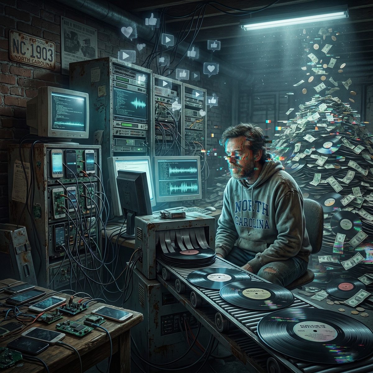 10 миллионов долларов заработал на несуществующих слушателях один предприимчивый житель Северной Каролины за последние семь лет. Майкл Смит загружал на стриминги сотни тысяч сгенерированных нейросетью треков, а затем накручивал на них прослушивания ботами. Не помогли на алгоритмы платформ, ни антиспам-фильтры. Ежедневно накручивалось полмиллиона прослушиваний на треках, которые не слышали реальные люди. Схема, в общем-то, не новая, накрутки существуют столько же, сколько существуют стриминги. Просто раньше нужно было где-то доставать музыку. Теперь ИИ решил эту проблему: один Suno генерирует около семи миллионов треков в день. Учитывая среднее количество треков примерно в 100 миллионов на стримингах, понадобится 2-3 недели, чтобы ИИ сделал столько же. Если разделить доход Смита, получится около 120 тысяч долларов в месяц – чтобы заработать такие деньги честно, артисту нужно собирать по 20 миллионов реальных прослушиваний ежемесячно, так что сделать ботоферму оказалось выгоднее. Эта про