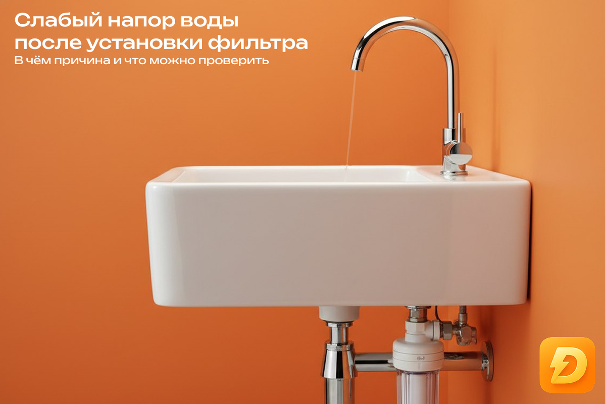 После установки фильтра для воды многие ожидают, что система будет работать незаметно: вода станет чище, а напор останется прежним. Но иногда происходит обратное — поток воды заметно ослабевает. Кран открывается полностью, а вода течёт тонкой струёй. Сначала кажется, что фильтр просто «так работает». Но на практике слабый напор после установки фильтра почти всегда говорит о конкретной причине, которую можно проверить. 1000 ₽ на первый заказ в Дели Дела — приятная скидка, если решите вызвать мастера вместо самостоятельного ремонта. 1. Новый фильтр ещё не промыт Некоторые фильтрующие элементы перед использованием требуют промывки. Если этого не сделать, внутри может оставаться пыль от фильтрующего материала, которая снижает пропускную способность. Что можно заметить: • напор стал слабее сразу после установки • вода идёт ровно, но заметно медленнее • фильтр установлен недавно Иногда достаточно провести правильную промывку системы, чтобы напор восстановился. 2. Засорился картридж фильтра Е