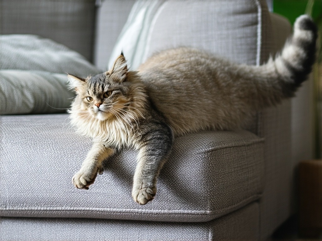 Первый раз я вообще поняла, что кошку можно научить кувырку, в тот момент, когда моя Мира навернулась с диванной подушки не как нормальная кошка, а как пушистый батон с хвостом. Просто взяла и перекатилась через бок, тут же вскочила, отряхнулась и пошла дальше с таким видом, будто это был не позорный срыв, а заранее продуманный номер.