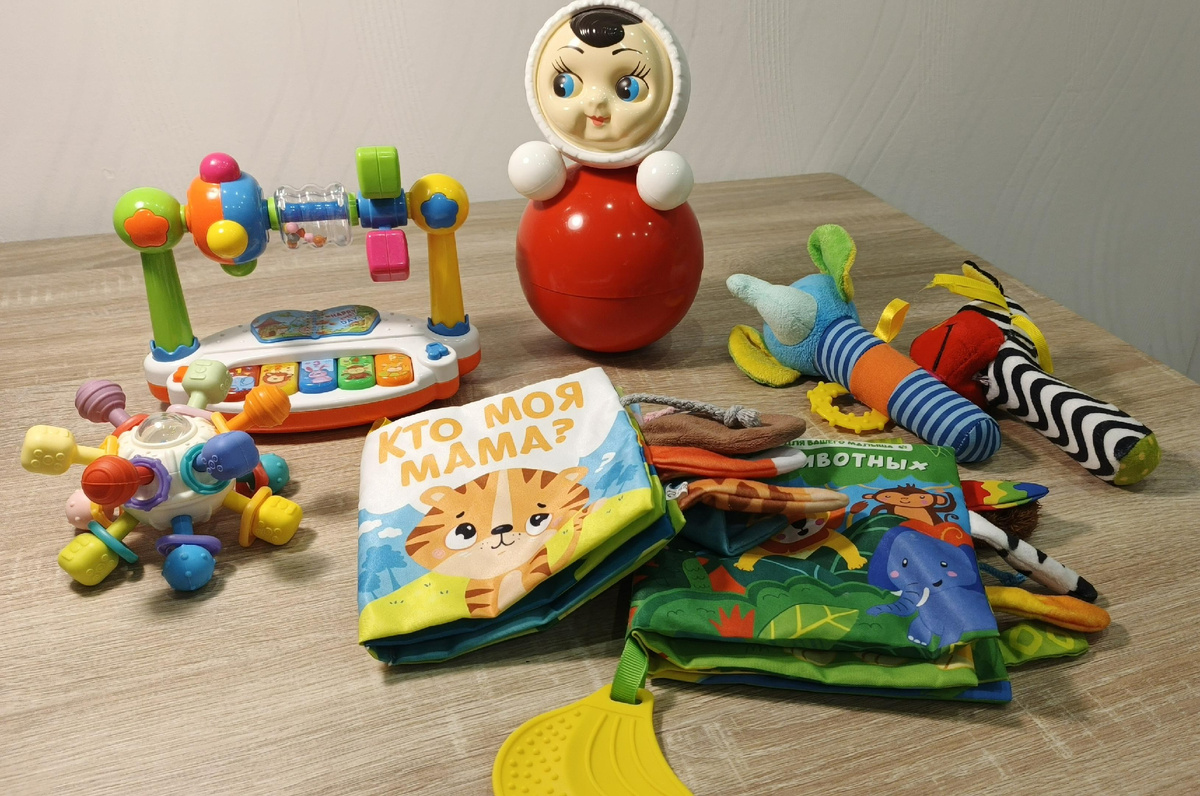 Моему сыну совсем скоро исполнится пять месяцев. Хотя, кажется, ещё только вчера мы с ним познакомились в роддоме... Он уже очень активно взаимодействует с игрушками, причем некоторым отдает особое предпочтение. Вот топ-5 любимых игрушек пятимесячного малыша. Книжки-шуршалки с хвостиками На маркетплейсах много разных вариантов книжек-шуршалок – как подешевле, так и подороже. Текста в них, конечно, почти нет, но это не главное. Ребенку очень нравится мусолить их – особенно яркие хвостики, выполненные из разных материалов. Неваляшка Неваляшка – подарок бабушки-логопеда. Она настояла на том, что у малыша должна быть эта игрушка, знакомая всем советским детям. И не ошиблась. Сначала ребенок лишь внимательно наблюдал за ней, а сейчас научился толкать её ногами и руками. Ну и в рот, конечно, пытается засунуть – но она ему не по зубам. Развивающий центр На маркетплейсах эту игрушку называют «развивающий центр», ну а в нашей семье это обычное «пианино». В памяти яркого мини-пианино большое кол