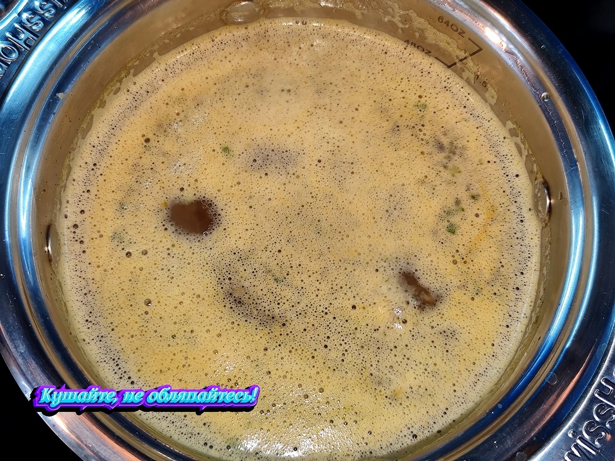 На максимальном огне доводим до кипения, убавляем огонь до среднего и дожидаемся образования обильной пены.