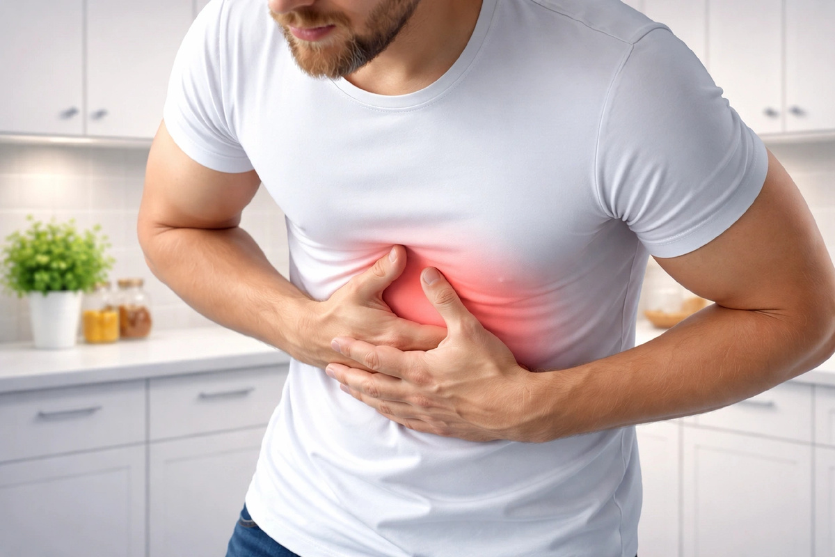 Если после жирной еды или алкоголя началась сильная боль в верхней части живота, и она не отпускает или нарастает, это уже не «что-то не то съел». При остром панкреатите боль отдаёт в спину, к ней присоединяются тошнота, рвота, температура, слабость.