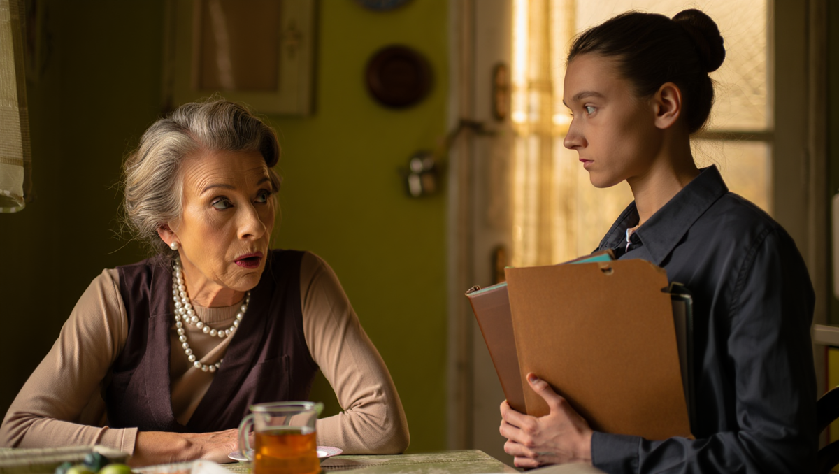 Кухня была маленькая — три на четыре, если не считать угол с холодильником. Людмила Ивановна занимала почти всё пространство у окна, держа в руках какую-то папку с бумагами. Откуда папка, Надя даже не успела сообразить.