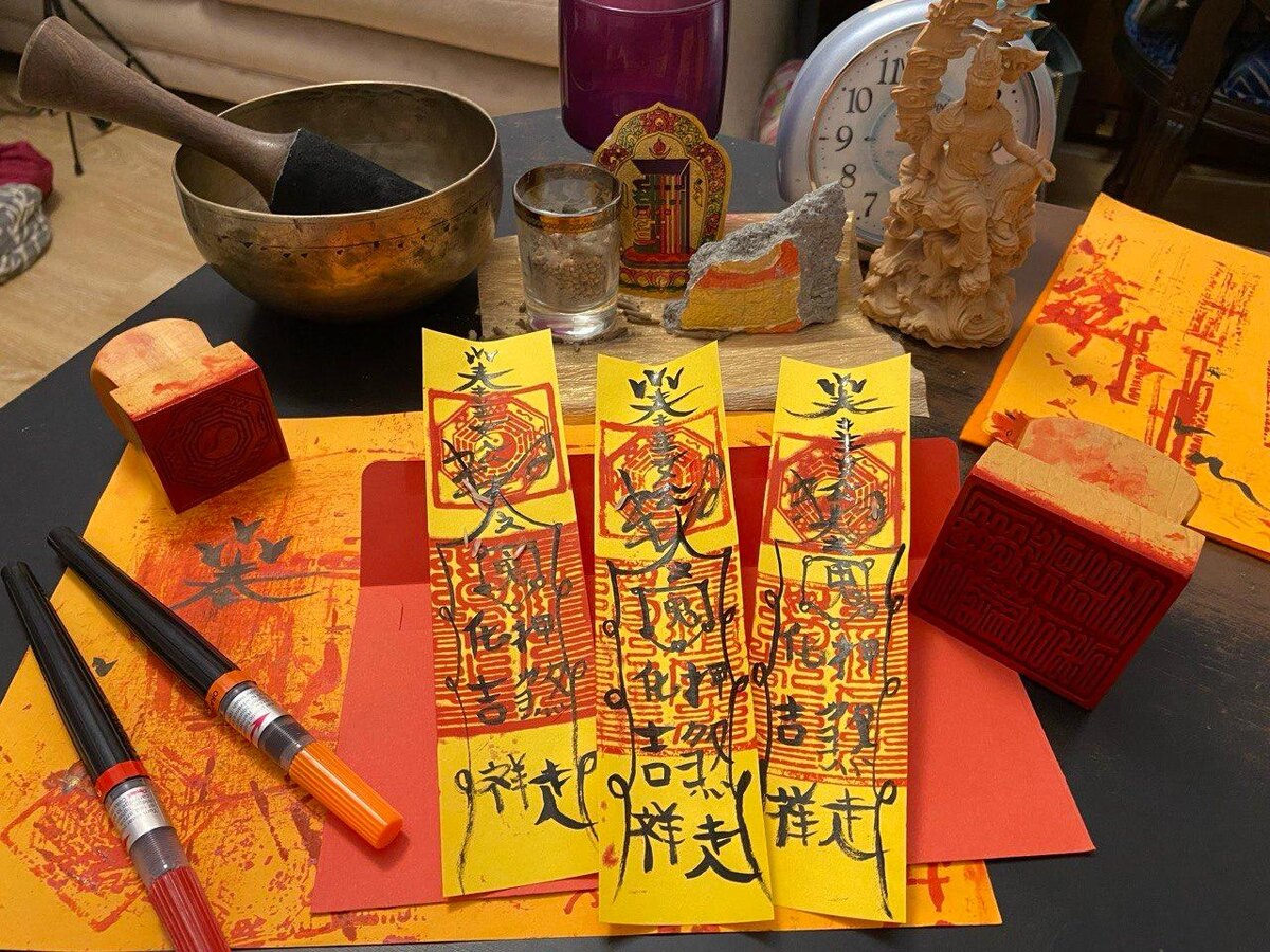 благоприятную сторону при помощи китайской каллиграфии. Невероятный метод с тысячелетней историей, где должно сойтись во едино множество условий. Обычно это использовали и используют сейчас, когда человек применил много способов решить какую-то сложную ситуацию, но она как заколдованная, не сдвигается с места. Тогда в дело идут вот эти Талисманы. Очень редко пишу их, так как дело это сильно не простое, требует особой подготовки, трёхдневной аскезы и прочих интересных моментов. Поэтому, даже не предлагаю вам, так как всегда пишу их ограниченным тиражом, адресно, просто делюсь с вами информацией что называется для расширения кругозора. Много лет назад, когда я стала изучать эту технологию, как ещё одну ветвь системы Цимэнь Дуньдзя (искусства выигрышных действий), я была поражена, какой огромный интереснейший пласт культуры и знаний, взаимодействий между людьми и природой, скрывается за этим методом, просто диву даёшься, как богат и безумно интересен этот мир!
