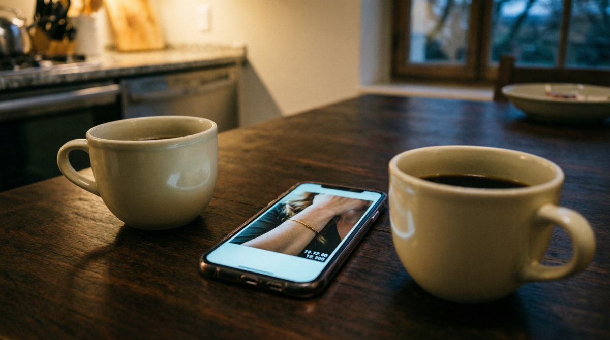 Фотографировала аккуратно, без системы поначалу. Браслет на запястье Жанны — за семейным обедом, в мае. Жанна что-то рассказывала, смеялась, браслет блестел. Валентина достала телефон как будто читает сообщение, нажала кнопку. Дата, время, браслет крупно.