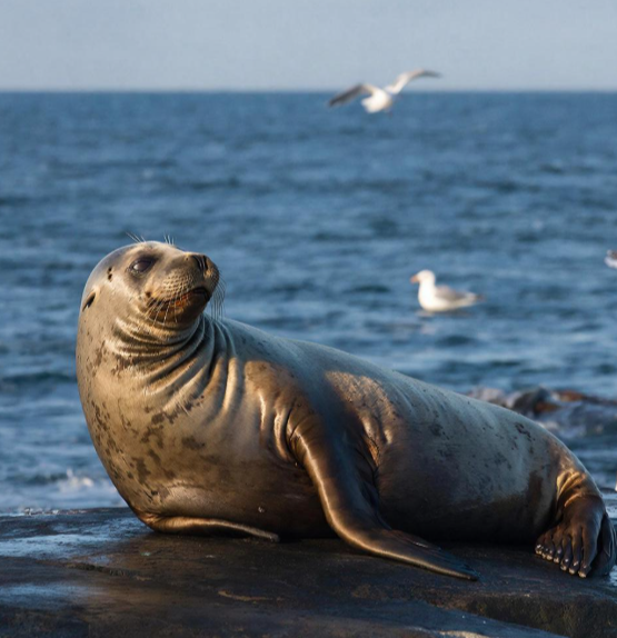Тюлени — морские млекопитающие отряда ластоногих, сочетающие жизнь в воде и на суше. Их обтекаемое тело с ластами позволяет быстро передвигаться под водой, а густой слой подкожного жира защищает от холода. Тюлени обитают в холодных водах Арктики и Антарктики, а также в умеренных широтах и пресных водоемах. Они являются хищниками, питающимися рыбой, кальмарами и ракообразными, и могут нырять на большую глубину. В период размножения тюлени собираются на лежбищах, где самки рождают детенышей, покрытых белым мехом. Тюлени играют важную роль в экосистемах, регулируя численность рыбы и служа пищей для других хищников. Из-за красивого меха на них долгое время велась охота, что привело к сокращению популяций. Сегодня многие виды тюленей находятся под охраной. Эти животные могут спать в воде благодаря способности замедлять сердцебиение, что помогает экономить кислород. Тюлени не используют эхолокацию для поиска добычи, полагаясь на зрение и вибриссы. Некоторые виды, такие как морской слон, спос