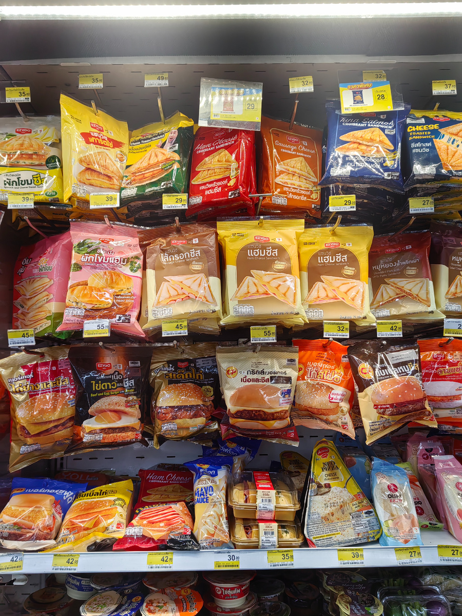 В Таиланде на каждом шагу есть магазин 7-Eleven. Кто был в Таиланде, знает и точно что-то там купил. Я пока тут живу, поэтому рассказываю, что можно выбрать в таком магазине в качестве здорового перекуса. В этом магазине есть все - товары для дома, еда, вкусняшки, напитки самые разнообразные. Одной кокосовой воды я насчитала 5 видов. Туристы чаще всего берут здесь вкусняшки и готовую еду. Я тоже сэндвичи тут люблю. Но ем их дополняя белком и овощами. А что делать, если нет кухни и нужно срочно купить перекус на бегу? Здесь есть выбор вполне здоровых перекусов! И выбор не маленький, просто не все вообще смотрят в сторону просто еды, когда увидели вкусняшки и сэндвичи. Здесь можно купить полноценные блюда. Их подогреют на кассе и выдадут вам вилку. Но соотношение гарнира и белка не очень подходящее. Гарнира очень много. Есть вариант - съесть только половину. Выбор еды здесь маленьким не назовешь. Конечно, это белок! Или 2 яйца. Заметили разный цвет упаковок. Одно яйцо в крутую,